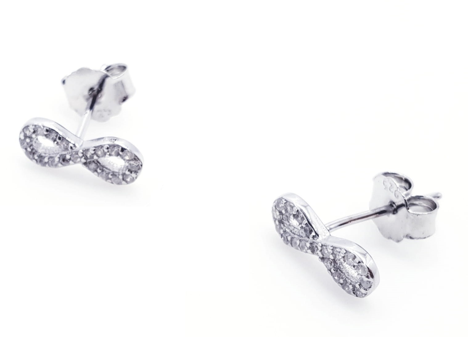 Kolczyki nieskończoność, produkt wykonany ze srebra próby 925 ,ozdobiony cyrkoniami