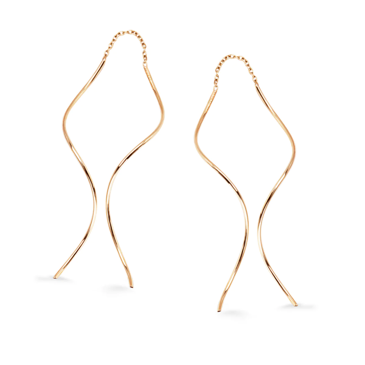 Kolczyki wykonane zostały z żółtego złota próby 0,333. Wysokość kolczyków ok. 60 mm. Masa ok. 0,91 g.
